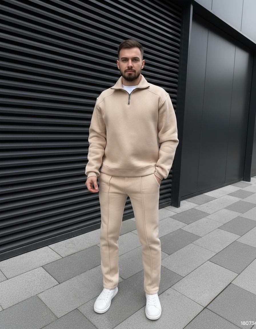 Zipper Plain Hoodie & Sweatpants Set Classic and versatile design Full-length front zipper on hoodie...