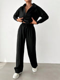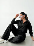 - Zipper Plain pullover & Sweatpants Set