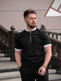 Black Contrast Zipper Polo
