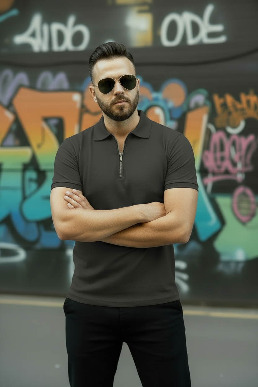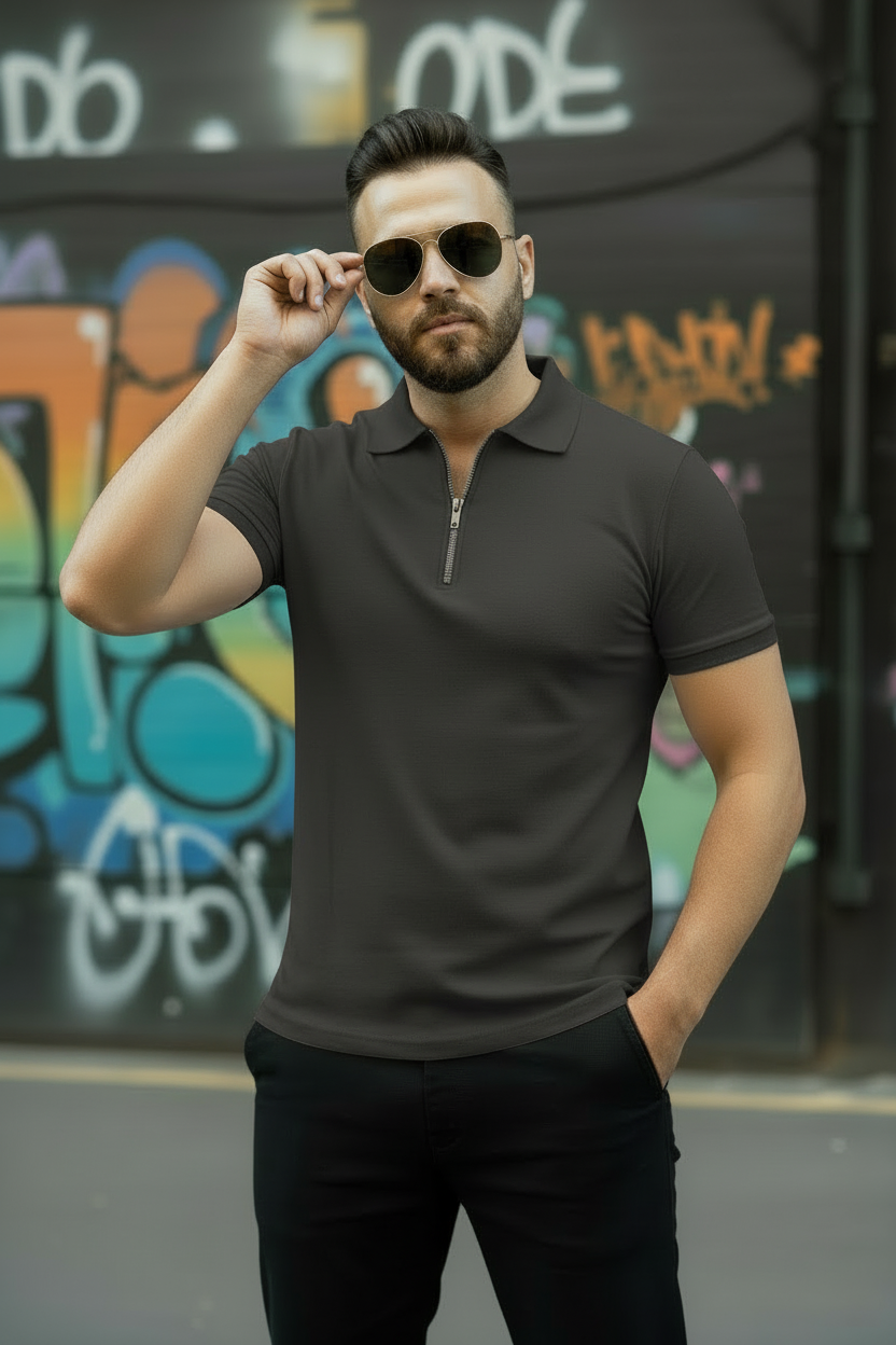 Dark Grey Zipper Polo Shirt