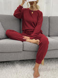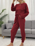 - Two-piece set designed for lounging or casual wear