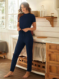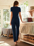 - Two-piece set designed for lounging or casual wear