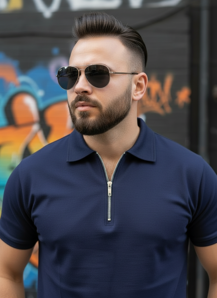 Navy Zipper Polo Shirt