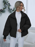 - Stylish and cozy: Women's Black Thermal Oversized Puffer Jacket