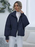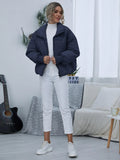 Women's Navy Blue Thermal Oversized Puffer Jacket